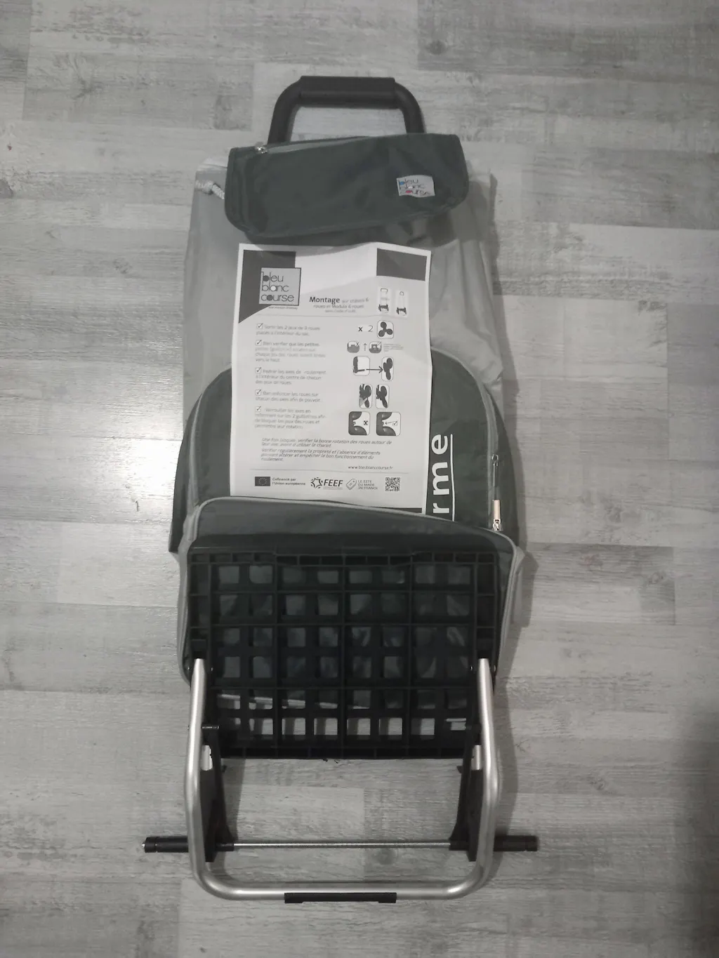Chariot très bien conçu et pratique avec une toile bien imperméable. Le logo made in FRANCE devrait être plus visible. Très satisfaite 😊